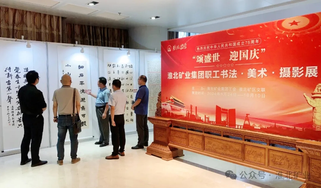 映像祖国,墨彩华章。9月24日,淮北矿业集团“颂盛世、迎国庆”书法、美术、摄影展开展。活动旨在展现中华人民共和国成立75周年来的辉煌成就,描绘新时代新征程中淮北矿业集团高质量发展的恢弘气象,讴歌矿区干部职工热爱祖国、奉献企业的时代风貌。淮北矿业集团党委书记、董事长方良才参观了展览,并对作品给予高度评价。淮北矿业集团工会第一副主席刘杰,淮北矿业副总经理陈亚东参观展览。